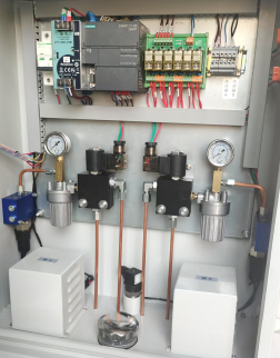 3. 电控系统采用PLC加触摸屏的控制方式,可接受连锁控制并能输出故障信号,喷油时刻微调功能,可设定的传感器监控时间,能够对链条停止或者传感器失效进行检测,具有液位监控和压力监控等功能,还可以与计算机联网,实现远程监控。